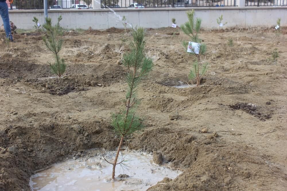 Etkinlikte 100 fidan toprakla buluşturuldu.