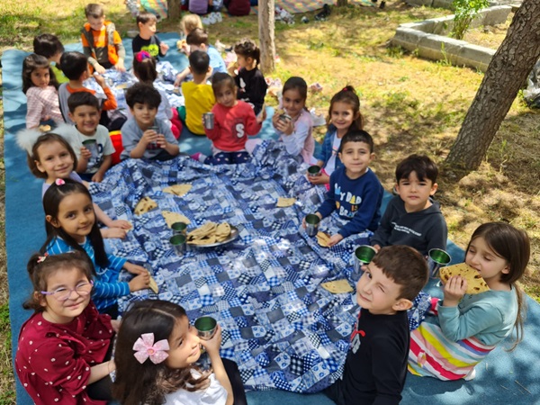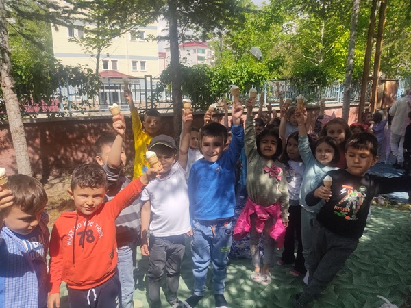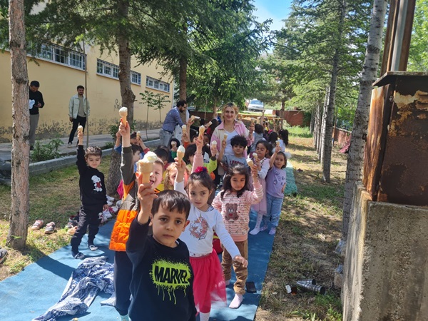 Müzik eşliğinde oyunlar oynayan öğrenciler Dondurmanın yanı sıra doğal sac üzerinde pişen yöresel Çiriş,Çökelek ile Yağlı Ballı böreğini de tattılar.