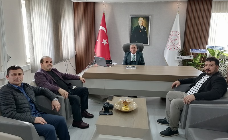 Afşin Merkez Yayın Grubu Genel Yayın Yönetmeni Halil Demir, GÖNÜLDER Başkanı Hüseyin Bozkurt ve İşadamı Raşit Ceyhan ile birlikte Afşin Milli Eğitim Müdürü olarak göreve başlayan Bünyamin Özdemir’e hayırlı olsun ziyaretinde bulundular.