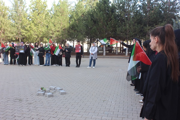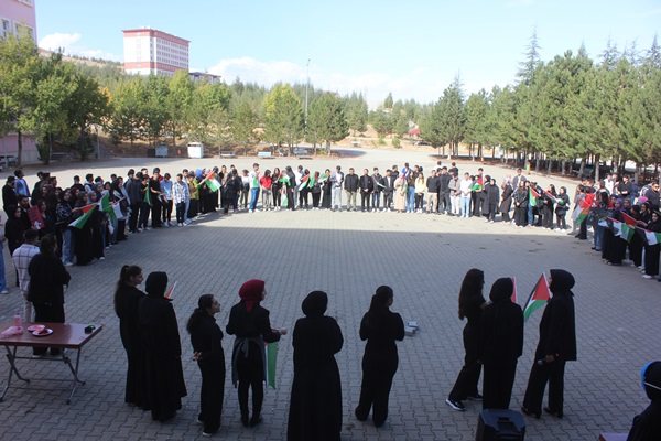 Kahramanmaraş Sütçü İmam Üniversitesi (KSÜ) Afşin Sağlık Yüksekokulu öğrencileri, Filistin ve Doğu Türkistan’da yaşanan insanlık dramına dikkat çekmek amacıyla anlamlı bir etkinlik gerçekleştirdi.