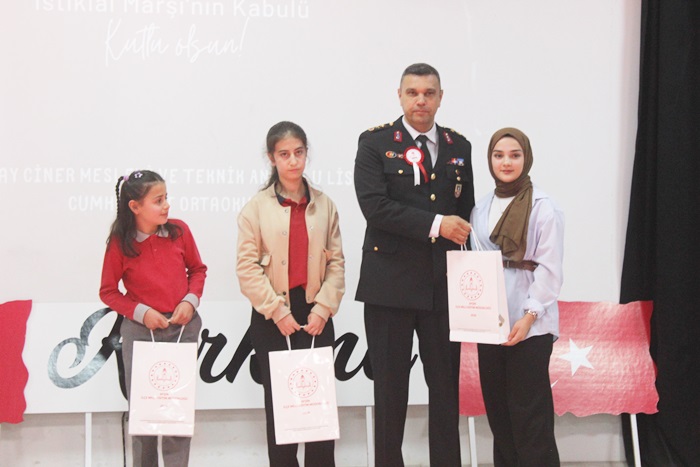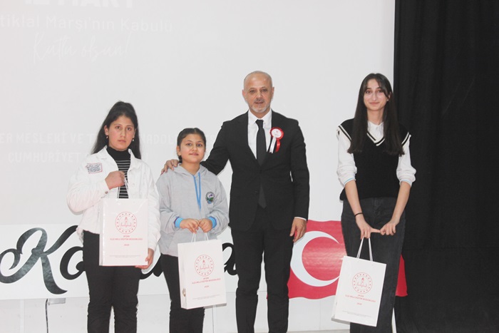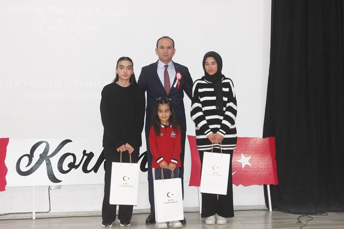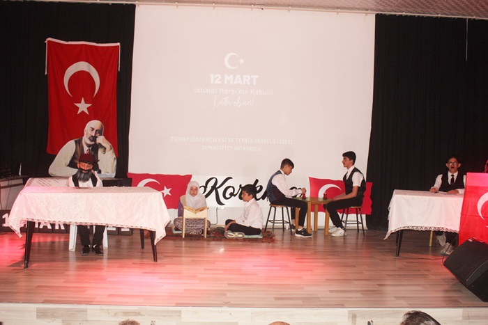 Afşin Turgay Ciner Mesleki ve Teknik Anadolu Lisesi ve Cumhuriyet Ortaokulu ortaklaşasında Saygı Duruşu ve İstiklal Marşının okunmasıyla başlayan programda Kur’an Tilaveti yapıldı.