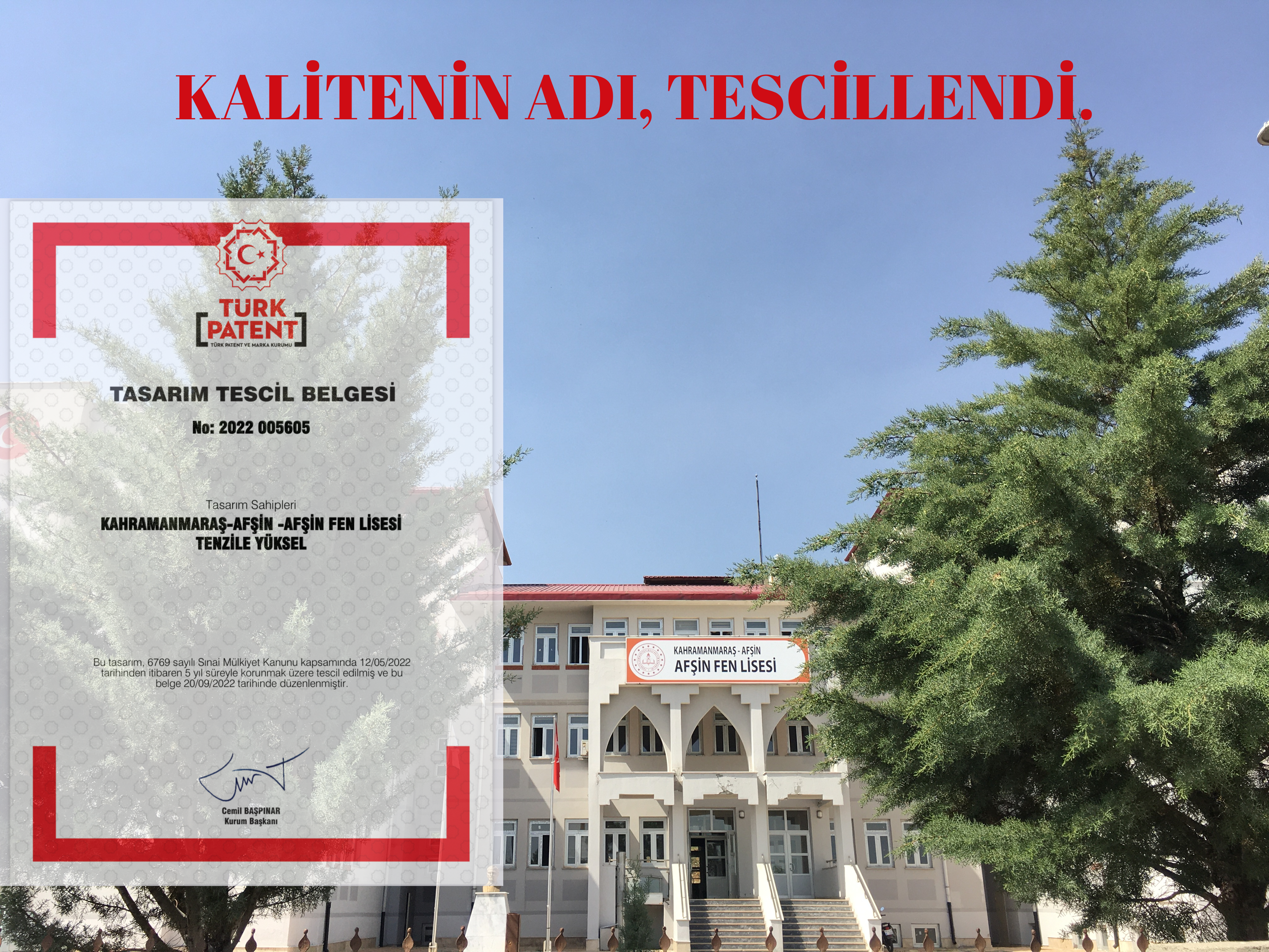 Afşin Fen Lisesi adı hak ettiği şekilde Türk Patent ve Marka Kurumu tarafından tescil edildi.