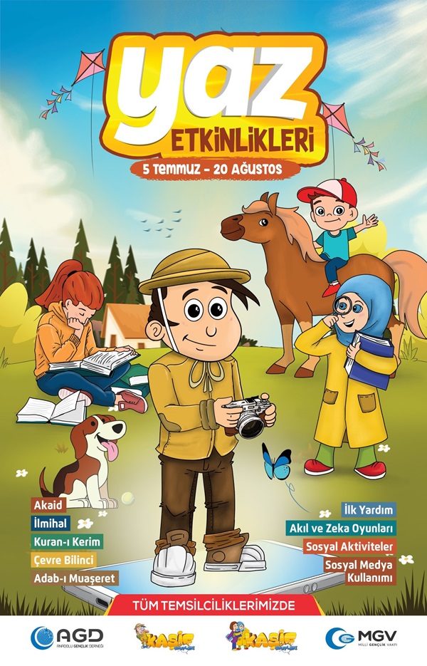 AGD’nin Yaz Etkinlikleri, Kur’an-ı Kerim, ilmihal, akaid, adabı muaşeret, peygamberler tarihi, örnek şahsiyetler, çevre bilinci, ilk yardım, akıl ve zeka oyunları, robotik kodlama, sosyal medya kullanımı gibi derslerin yanı sıra sosyal, kültürel ve teknolojik faaliyetlerin de içerisinde olduğu, öğrencilerin eğlenirken öğrendiği ve tatil dönemini verimli geçirdiği bir etkinlik dönemi olarak öne çıkıyor.