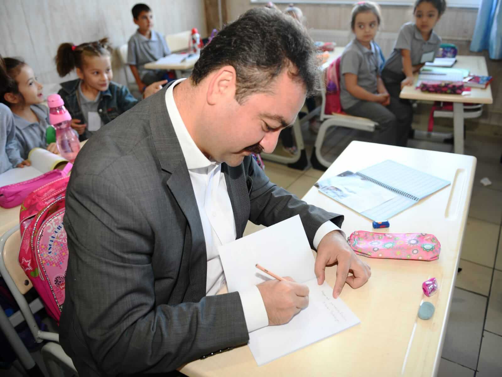 Elbistan Belediye Başkanı Mehmet Gürbüz, minik öğrencilerin defterlerine, “Geleceğimiz sizinle daha güzel. Sevgilerimle” yazarak okul çantası ve kırtasiye malzemelerinden oluşan eğitim setlerini hediye etti.