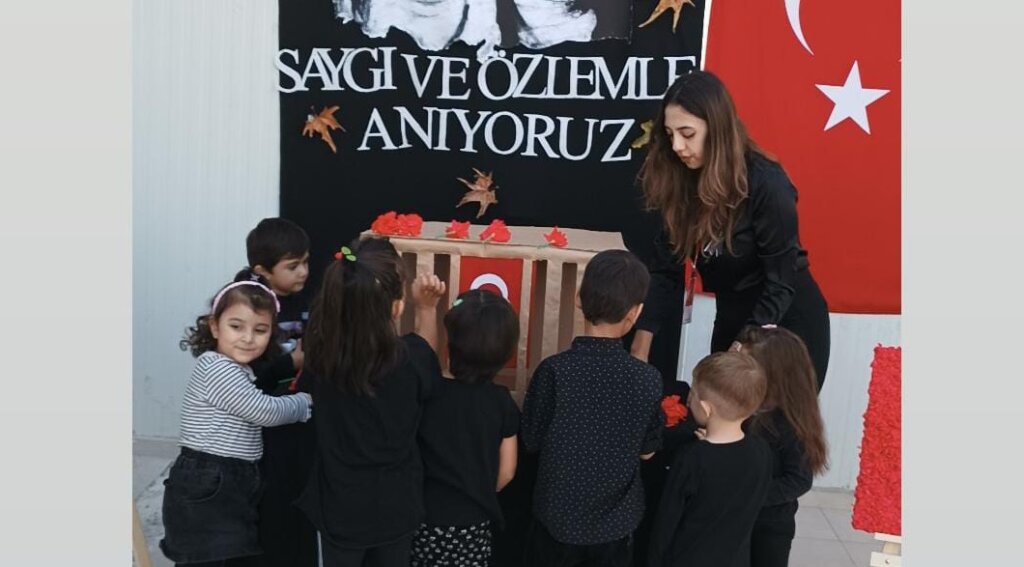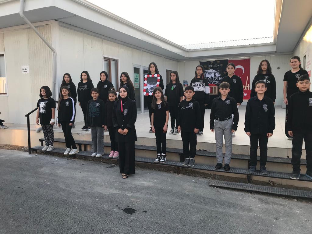Dün yapılan etkinlikte Mustafa Kemal Atatürk’ün vefatının 85. yılında Fidanlık konteyner kentte Sosyal Hizmetler personelleri ve konteynerda yaşayan çocuklarla birlikte 10 Kasım töreni düzenlendi.