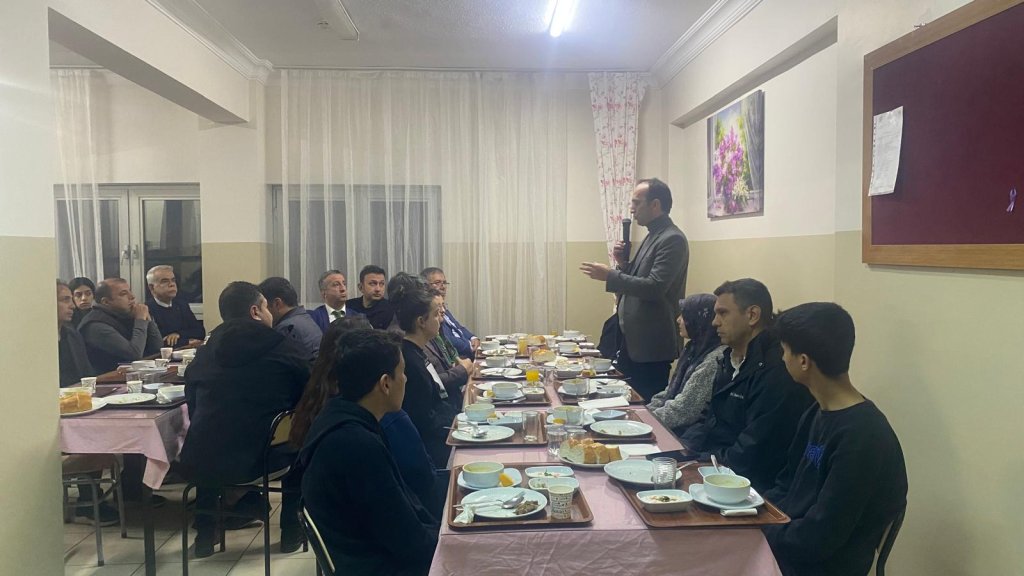 Yapılan yenilikler hakkında bilgi alan Kaymakam Muammer Sarıdoğan ve beraberindeki heyet öğrencilerimizle birlikte akşam yemeği yiyerek öğrencilerle sohbet ettiler.