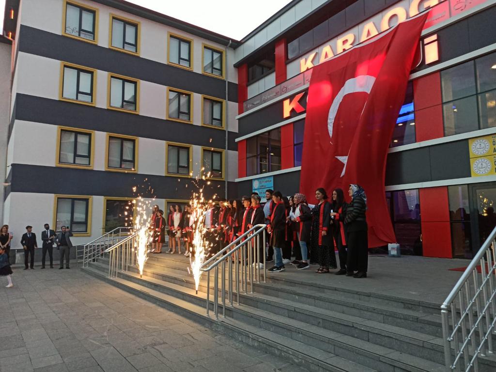 Bölgenin en dinamik eğitim kurumlarından Karaoğlan Kolejinde mezuniyet coşkusu yaşandı. Kolej önünde önce ki akşam gerçekleşen mezuniyet töreninde öğrenciler duygulu,öğretmenler ve veliler ise gururluydu.