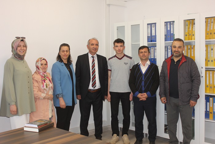 Okul Müdürü Fatih Köker ve Yarışma Şampiyonu öğrenci Durmuş Soyer’e yapılan ziyarette Proje öğretmenleri Ziyarette Deniz Özen, Esvet Yılmaz,Ayşe Erivan’da bulundu.