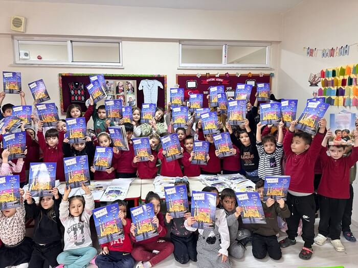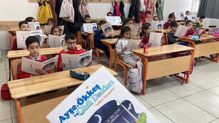 Öğrencilere “Bereket Zamanı” dergisi, “Ayşe, Ökkeş ve Gizli Dostları (İyilikte Yarışanlar)” hikâye kitabı ile “Ayşe ve Ökkeş ile Bilgiyi Renklendiriyoruz” Ramazan’a özel boyama kitapları dağıtıldı.