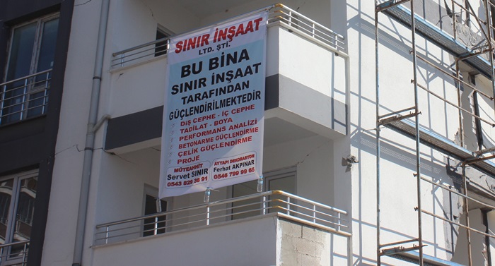 Yılmazlar Petrol arkasında bulunan binaların Güçlendirme,tadilat ve tamiratını tamamlayarak teslim eden Sınır İnşaat şimdi de Yeşilyurt Mahallesi Gedikbaşı Camii yanında bulunan Ertuğrulgazi Apartmanında Güçlendirme, tadilat ve tamirat çalışmasına başladı.