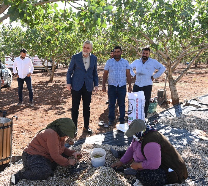 Pazarcık’ta fıstık hasadına katılan Başkan Görgel, “Asırlardır toprağımızda kök salan, çiftçimizin alın teri, şehrimizin rayihasıyla olgunlaşan her bir ürüne sahip çıkmaya devam ediyoruz. Pazarcık Fıstığı da bunlardan bir tanesi. Bunun ulusal ve uluslararası arenada tanıtımı noktasında gerekli adımları atıyoruz. İnşallah Pazarcık Fıstığı da şehrimizin tescilli ürünleri arasındaki yerini alacak” dedi.