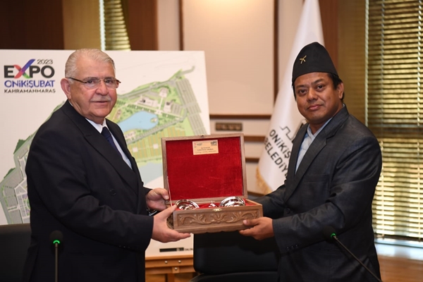 Nepal Genel Komiseri Brendra Bajracharya ise başkan Mahçiçek’e ev sahipliğinden ötürü teşekkür ederken, EXPO 2023 Alanı’ndan etkilendiğini aktardı. EXPO 2023 ile iki ülke ilişkilerinin daha da üst noktalara çıkacağına inandığını kaydeden Brendra Bajracharya, “Kahramanmaraş’ta bulunmaktan ve Onikişubat Belediye Başkanı Hanefi Mahçiçek’i ziyaret etmekten mutluluk duyuyorum. NEPAL Federal Demokratik Cumhuriyeti olarak Kahramanmaraş EXPO 2023’e katılmayı planlıyoruz. Bugün EXPO Alanını ziyaret ettim ve çok etkilendim, olağanüstü başarılarından dolayı Sayın Başkan’ı ve tüm ekibini tebrik ediyorum. Umarım Nepal Pavilyonu ve Bahçemiz iki ülke arasındaki mevcut iyi ilişkileri yansıtacak ve yeni bir renk getirecektir. Nepal birçok yönden barışçıl ve zengin bir ülkedir. Artık Türkiye ile Nepal arasında direkt uçuşlar var ve Türk halkının zengin kültürümüz ve doğamız için Nepal’i ziyaret ettiğini görmekten mutluluk duyuyoruz. Umarım Kahramanmaraşlılar da Nepal’e gelirler ve misafirperverliğimizi gösterme fırsatı buluruz. Kahramanmaraş Onikişubat EXPO’SU sadece kültürümüzün tanıtımına değil aynı zamanda ülkelerimiz arasında ikili ekonomik ve ticari ilişkilerin artmasına da hizmet edecektir. Bana gösterilen misafirperverlikten dolayı teşekkür eder, EXPO 2023 Kahramanmaraş’ın başarılarının devamını dilerim” dedi.