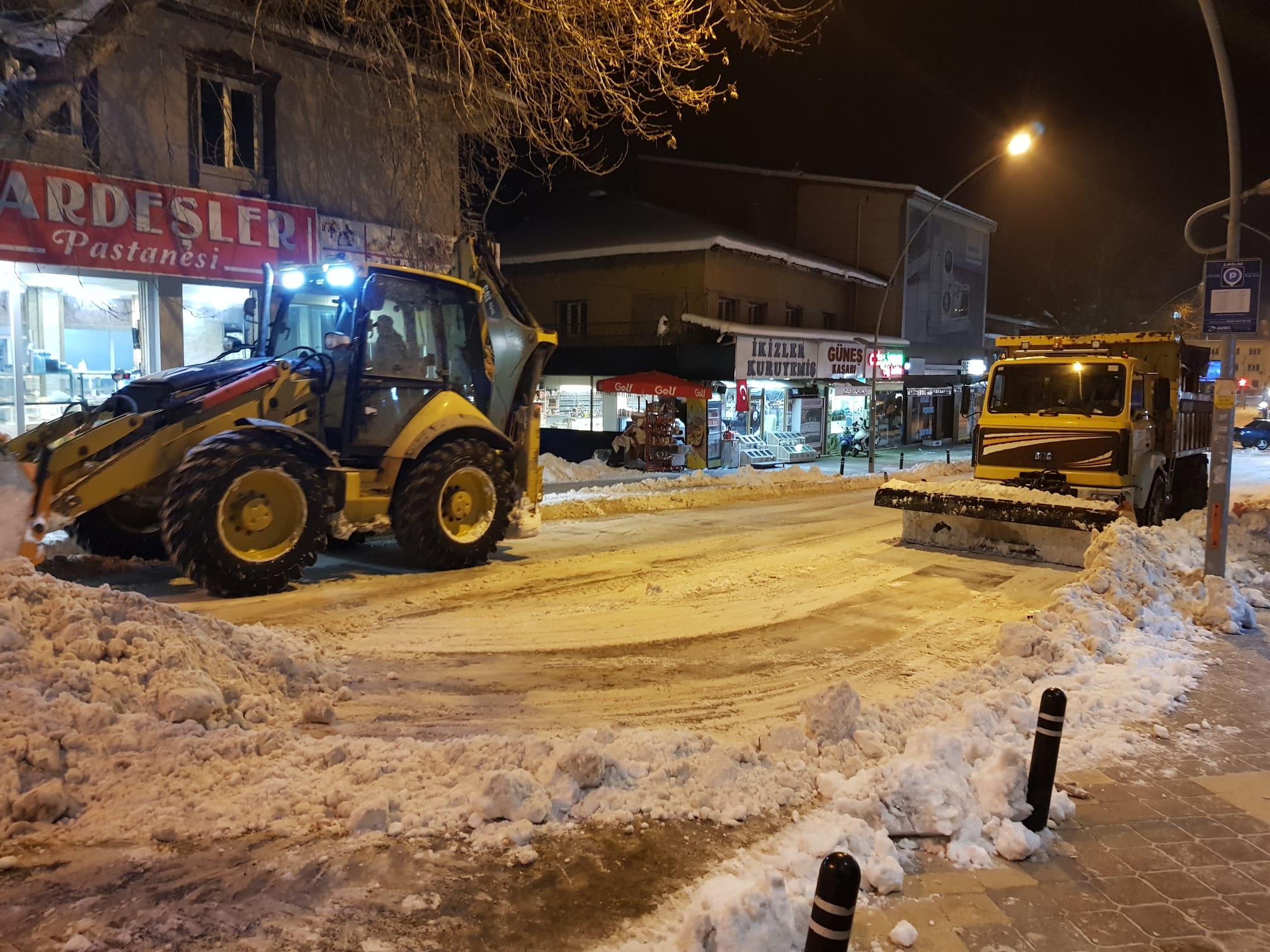 Belediye ekipleri bir yandan gece gündüz kar küreme çalışmalarını sürdürürken, ilçedeki tüm ana yollar ve köy yollarını da yoğun bir çalışma ile trafiğe uygun ve yayaların yürüyebileceği hale getirdi.