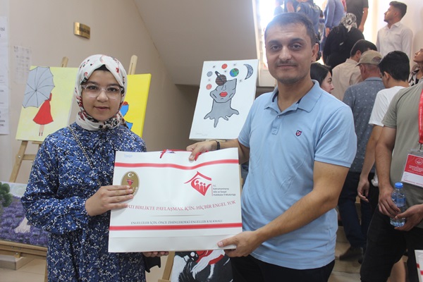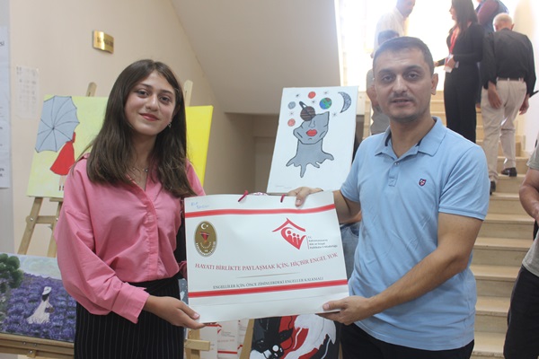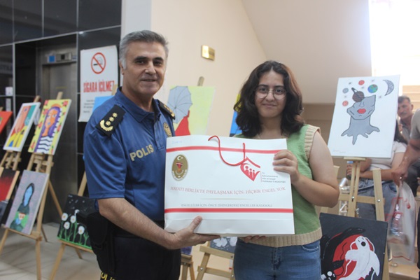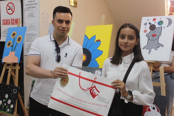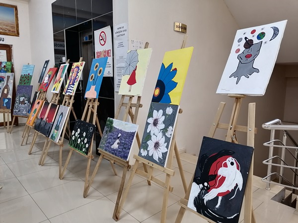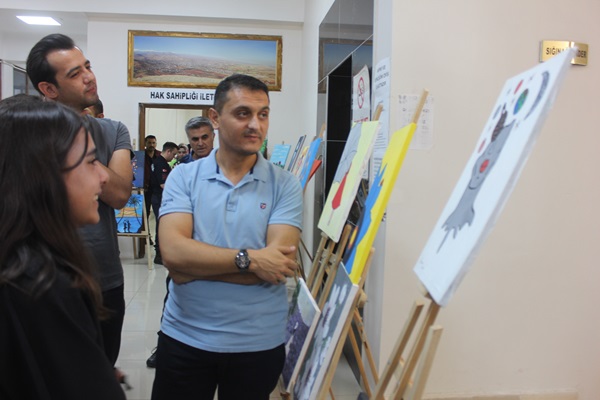 Sergide konuşan Aile ve Çalışma Bakanlığı Psikolojik Danışmanlarından Bennur Akın’da, Bugün burada 30’a yakın çocuğumuzun 40’a yakın çalışmasının sergilendiği bir programdayız. Çocuklarımız Serbest stil çalıştı ve bizlerde onlara yardım ettik dedi.