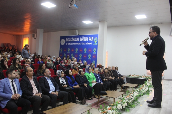 “Mutlu ve Başarılı bir insan güzel ve huzurlu bir aileye sahiptir.“ Öyleyse hayattaki başarı yolu, birbirini anlayan eş olmaktan ve mutluluklarını paylaşan aileden geçmektedir. Oysa ülkemizde boşanmalar son yıllarda artış gösterirken insanımızın mutsuzluğu ve aile içi iletişimsizliği aile içi şiddete dönüşmektedir. Bunu önlemek için aile içi iletişimi en sağlıklı ve en kalıcı şekilde tesis etmeliyiz” dedi.