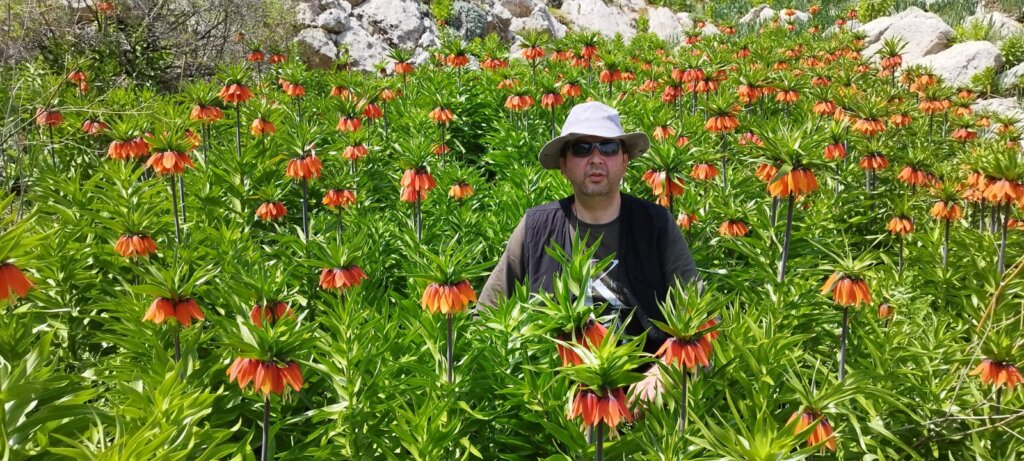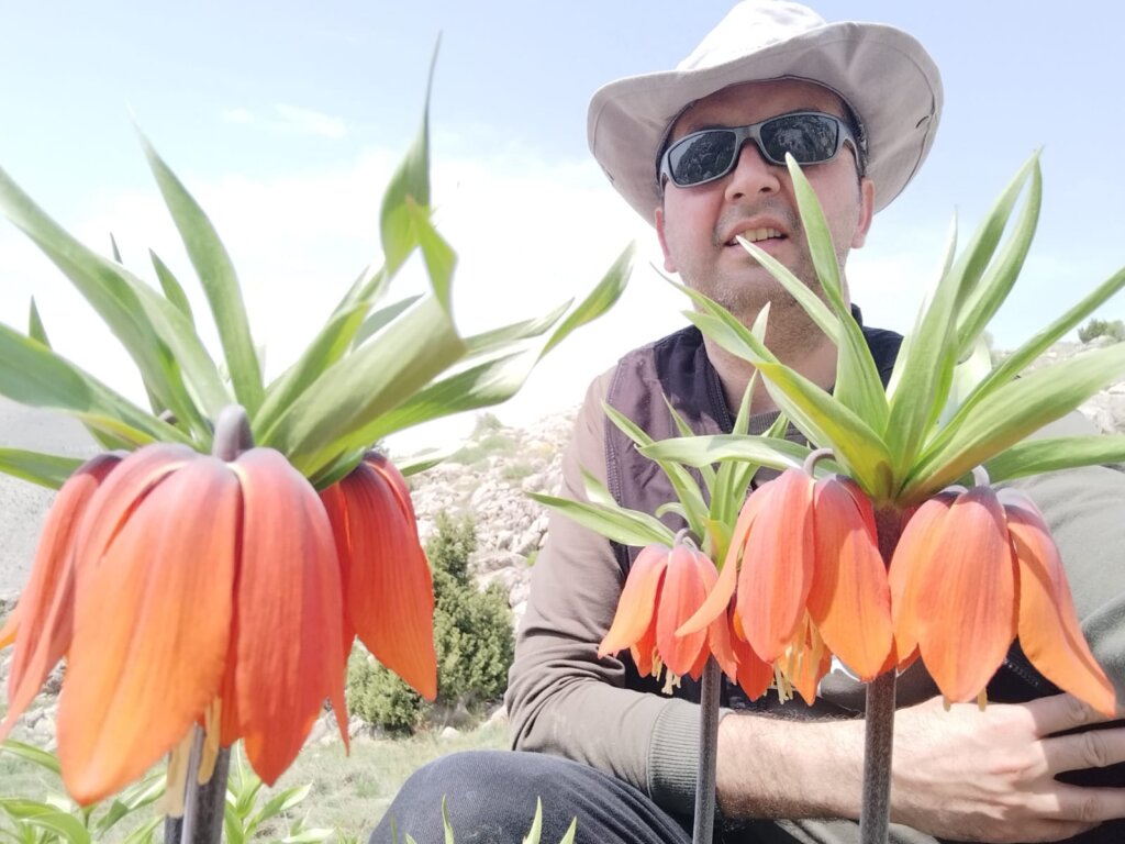 Halk arasında Ağlayan Gelin olarak bilinen Ters Lalelerin içerisinde çekimler yapan Aksu, Orta Toroslar olarak adlandırılan Binboğa Dağlarının Doğu yamaçlarındayız. Buranın Coğrafi yapısından dolayı Ters Lalenin Anadolu Coğrafyasında ki en Batı’da ki yerindeyiz. Gördüğünüz gibi vadinin ortasında milyonlarca Ters Lale adeta Lale tarlasını andırıyor. İçerisinde bulunduğumuz alanda ki Laleler tam olarak açmış,daha aşağıdakiler geçmiş en yukarıdakiler ise henüz açmamış. Ters Lale halk arasında Ağlayan Gelin olarak adlandırılan endemik bir bitki türüdür. Daha çok Hakkari,Van,Adıyaman civarında yetişiyor olarak bilinir. Oysa ki Kahramanmaraş’ın Afşin ve Ekinözü İlçelerinde de yetişir. Biz de şu anda Afşin İlçesinin Binboğa Dağlarının Doğu yamaçlarında bulunan Ters Laleleri ziyarete geldik. Endemiz bir bitki olması dolayısı ile koruma altındadır ve sökülmesi zarar verilmesi yasaktır dedi.