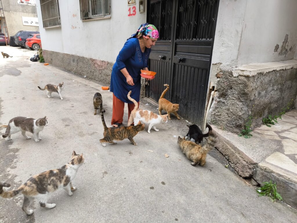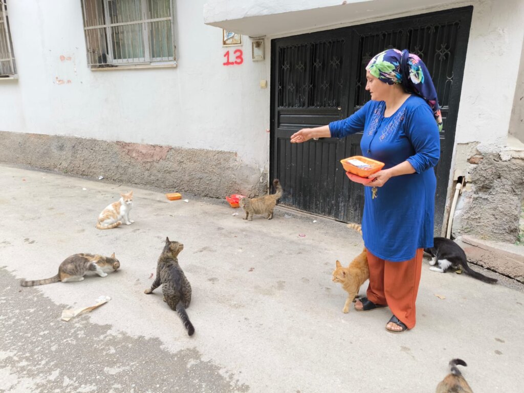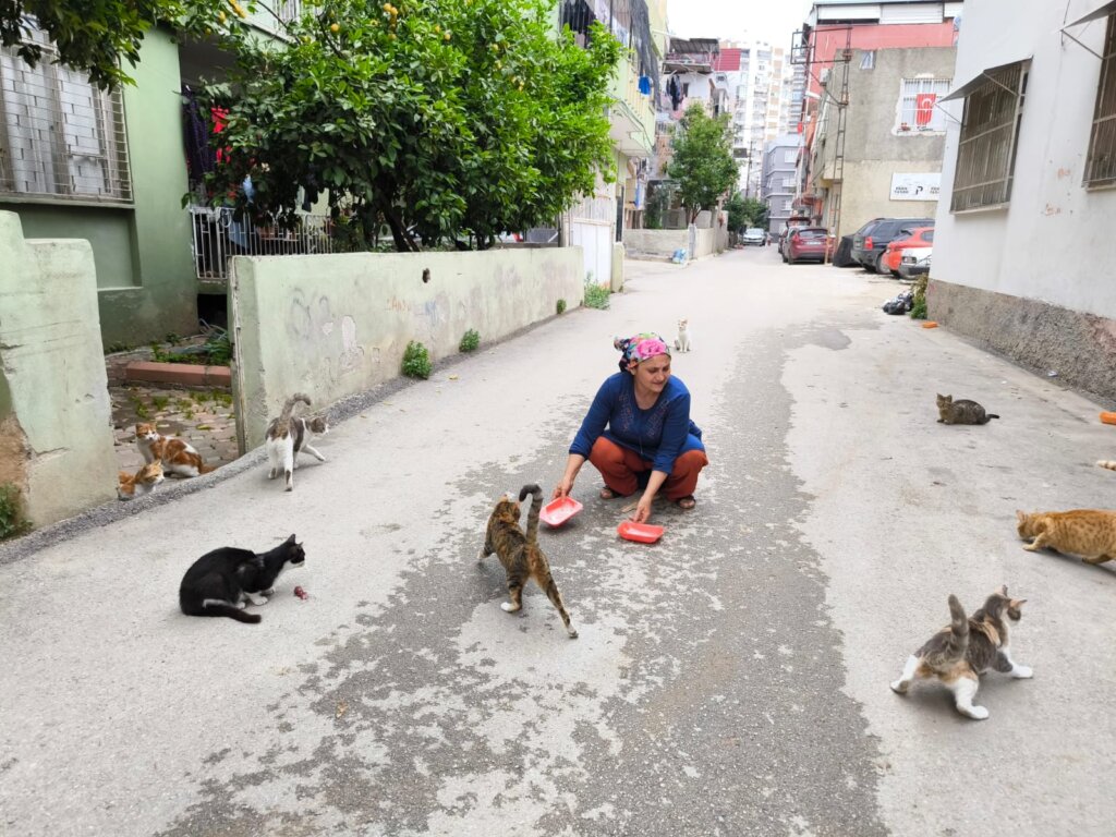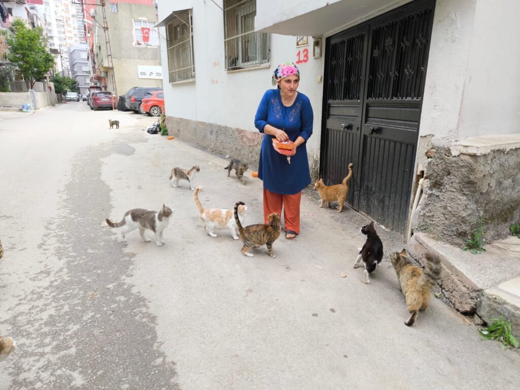 Aslen Afşinli olup Adana’nın Seyhan İlçesinde yaşayan Özlem Yaşar, yıllardır mahallenin Kedilerini besliyor.