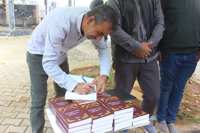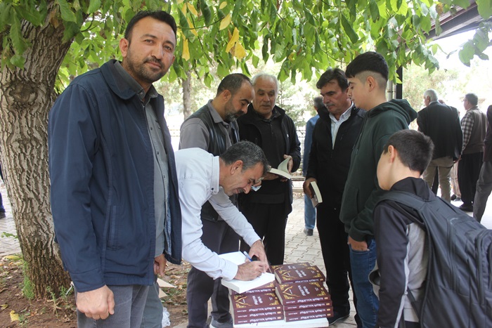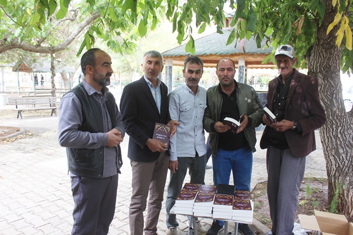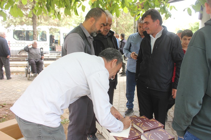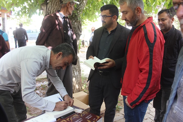 Cuma namazı çıkışında Merkez Camii önünde kitaplarını imzalı olarak alan vatandaşlar, Şaire ellerine sağlım temennisinde bulundular.