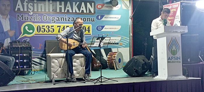 Programın açılış konuşmasını yapan Afşin Halk Ozanları Derneği Başkanı Ahmet Karakaya, Derneğimiz tarafından Deprem sonrasında “Sesimi Duyan Var mı?” adlı bir proje hazırladık. Projemiz İçişleri Bakanlığı Sivil Toplumla İlişkiler Genel Müdürlüğü tarafından kabul gördü. Proje kapsamında Ücretsiz Bağlama,Keman ve Ney Kurslarımız var. Bağlama kursumuzun startı verildi. Yine projemiz kapsamında bulunan Halk Konseri için bugün vatandaşlarımızla buluşuyoruz. Yer tahsisinde bizlere yardımcı olan Belediye Başkanımıza ve emeği geçen herkese teşekkür ediyorum dedi.