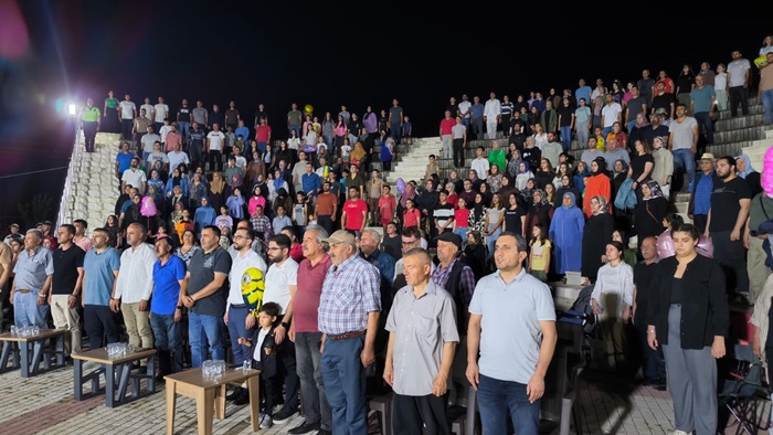 Konserin yapıldığı alan tıklım tıklım dolarken program Saygı Duruşu ve İstiklal Marşının okunmasıyla başladı.