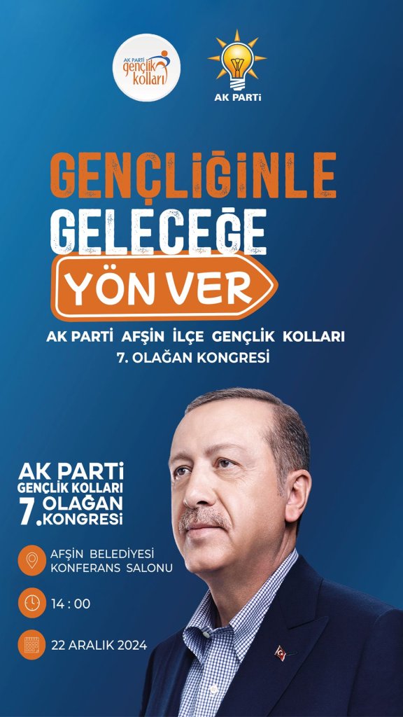 Dört yılı aşkın bir süredir Ak Parti Gençlik Kolları Başkanlığını yürüten Aytekin Özgül 22 Aralık Pazar günü saat 14:00 da Afşin Belediyesi Konferans Salonunda Gerçekleştirilecek kongre ile görevini birlikte çalışma arkadaşı olan Ercan Akçadağ’a devredecek.