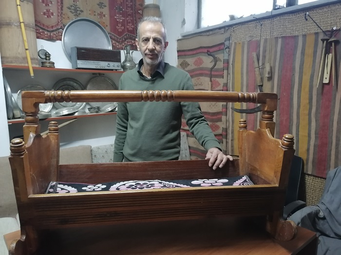 Hatta çivi kullanılmadan yapılan ahşap beşik koleksiyonun en değerli parçası.
