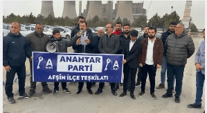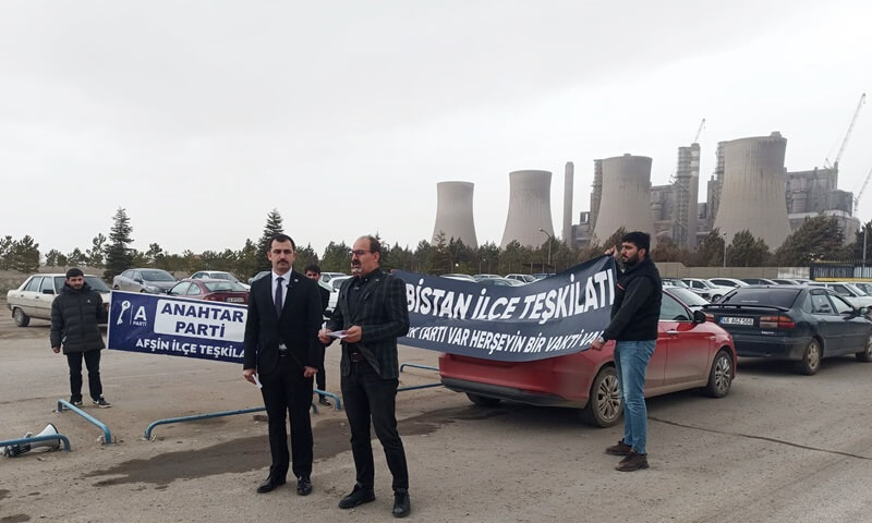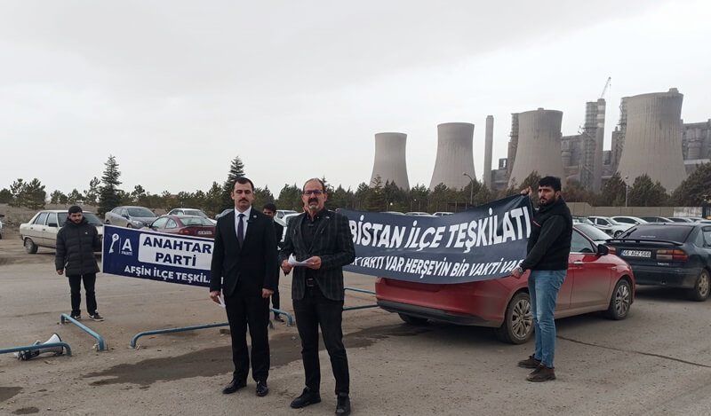 Anahtar Parti Afşin İlçe Başkanı Alperen Kır ve Anahtar Parti Elbistan İlçe Başkanı Fatih Özcan Teşkilat mensuplarıyla birlikte Afşin-Elbistan Çelikler A Termik Santrali önünde Basın açıklaması yaptı.