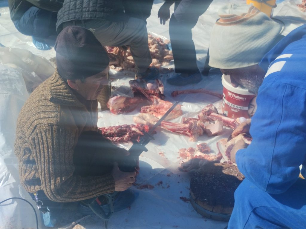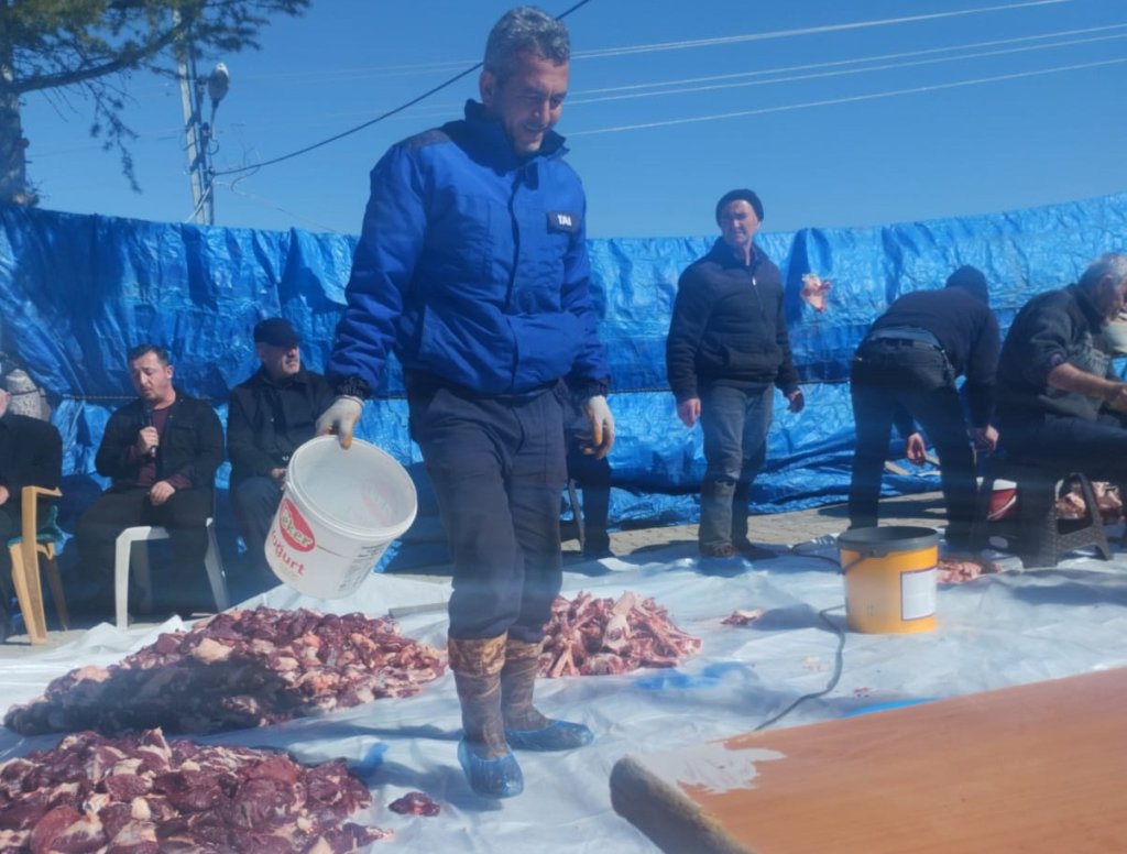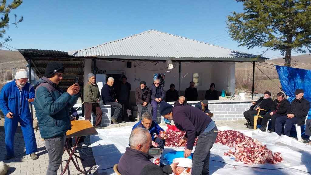 Önce ki gün yeni yapılan Cami önünde kesilen Kurbanlar Köy genelinde dağıtıldı.