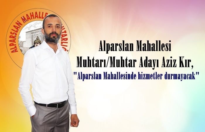 Alparslan Mahallesi Muhtarı/Muhtar Adayı Aziz Kır, Alparslan Mahallesi 5 yıllık sürede bir çok hizmeti almayı başardı. 31 Mart seçimleriyle de bu hizmetler durmayacak dedi.
