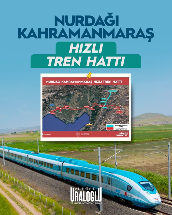 Ulaştırma ve Altyapı Bakanı Abdulkadir Uraloğlu, Gaziantep’in Nurdağı ilçesinden Kahramanmaraş’a uzanan 49 kilometrelik hızlı tren hattına ilişkin proje çalışmalarının tüm hızıyla sürdüğünü açıkladı. Söz konusu hat, yapımı devam eden 312,5 kilometrelik Mersin – Adana – Osmaniye – Gaziantep Hızlı Tren Projesi ile entegre edilerek Kahramanmaraş’ı Türkiye’nin ana ulaşım ve ticaret koridorlarına bağlayacak.