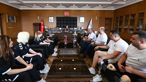 Büyükşehir Belediye Başkanı Fırat Görgel, Erkekler Oturarak Voleybol Ligi’nde Süper Lig’e yükselerek büyük bir başarıya imza atan sporcuları makamında ağırladı.