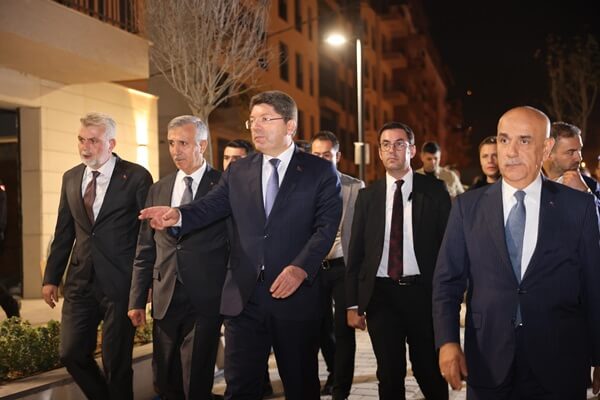 Kahramanmaraş Büyükşehir Belediye Başkanı Fırat Görgel, bir dizi temaslarda bulunmak ve çeşitli programlara katılmak üzere şehre gelen Adalet Bakanı Yılmaz Tunç’u makamında ağırladı. Vali Mükerrem Ünlüer, 66. Hükümet Tarım ve Orman Bakanı Prof. Dr. Vahit Kirişci, AK Parti Kahramanmaraş Milletvekili Tuba Köksal, AK Parti İl Başkanı Muhammed Burak Gül, MHP İl Başkanı Mansur Metehan ve Onikişubat Belediye Başkanı Hanifi Toptaş’ın da yer aldığı ziyarette Başkan Görgel, Bakan Tunç’a deprem sonrası şehirde yürütülen çalışmalar hakkında kapsamlı bilgi aktardı. Görgel, özellikle altyapı, kentsel dönüşüm ve kalıcı konut alanlarında hayata geçirilen projeler ile belediyenin faaliyetlerini detaylı şekilde paylaştı. Ziyaretin devamında Adalet Bakanı Tunç ve beraberindeki heyet, şehir merkezinde yer alan rezerv alanlarda incelemelerde bulundu. Bakan Tunç, yapımı tamamlanan kalıcı konutları gezerek hak sahiplerine teslim sürecine ilişkin bilgi aldı.