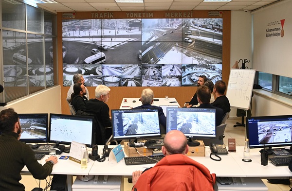 Kahramanmaraş Büyükşehir Belediyesi, bugün öğle saatlerinden itibaren şehir genelinde etkili olan yoğun kar yağışının ulaşımda aksamalara neden olmaması ve vatandaşların günlük yaşamının olumsuz etkilenmemesi için kış şartlarıyla mücadelesini aralıksız sürdürüyor. Büyükşehir Belediyesi, tüm birimleriyle sahada ve koordinasyon merkezlerinde çalışmalarını yoğunlaştırmış durumda. Büyükşehir Belediye Başkanı Fırat Görgel, yürütülen çalışmaları yerinde takip etmek amacıyla Trafik Yönetim Merkezi’ni ziyaret ederek şehir genelindeki son durumu anbean inceledi. Başkan Görgel, merkezde bulunan 264 kameradan şehir merkezi ve 11 ilçedeki ana arterler, bulvarlar, kavşaklar, cadde ve sokaklardaki yol durumunu canlı olarak izledi. Ulaşım Dairesi Başkanı Gökhan Başpınar’dan detaylı bilgiler alan Başkan Görgel; kar küreme, tuzlama ve solüsyon uygulamalarının sürdürüldüğü noktalar, yağışın yoğunlaştığı bölgeler ve trafik akışının yavaşladığı güzergâhlar hakkında kapsamlı değerlendirmelerde bulundu.