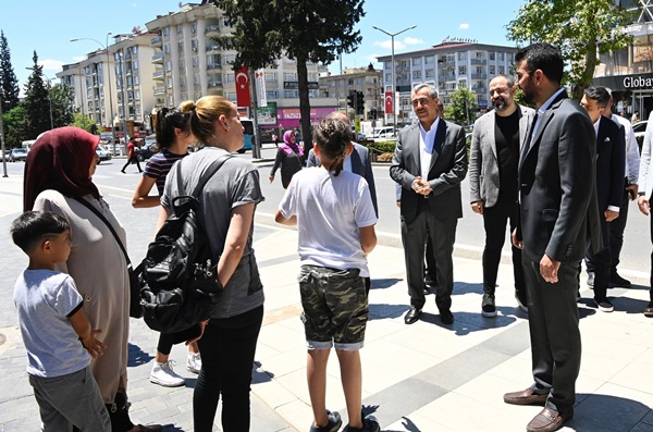 Kahramanmaraş Büyükşehir Belediye Başkanı Hayrettin Güngör, şehir genelinde esnaf ve vatandaş ziyaretlerini sürdürüyor. Bu kapsamda Başkan Hayrettin Güngör, Azerbaycan Bulvarı’nda esnafları ziyaret ederek hayırlı işler temennisinde bulundu. AK Parti İl Başkan Yardımcısı Ender Umut Papuççu, Onikişubat İlçe Başkanı Mücahit Kara, Büyükşehir Belediyesi Meclis Üyeleri ve teşkilat mensuplarının da yer aldığı ziyaretler sonrası açıklamalarda bulunan Başkan Hayrettin Güngör, “Her fırsatta hemşehrilerimizle bir araya gelmeye, istişarelerde bulunmaya ve taleplerini dinlemeye gayret ediyoruz. Bugün de Azerbaycan Bulvarı’nda esnaflarımızı ziyaret ederek hayırlı işler temennisinde bulunduk. Gerçekten her zaman olduğu gibi güler yüzleri ve hüsnükabulleriyle karşılaştık. Tüm esnaflarımıza canı gönülden teşekkür ediyor, hayırlı kazançlar diliyorum” ifadelerini kullandı.