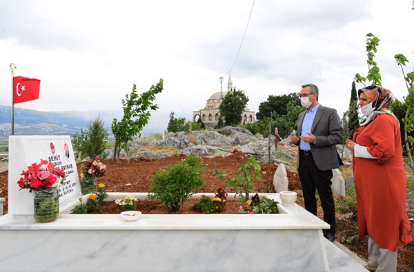 Kahramanmaraş Büyükşehir Belediye Başkanı Hayrettin Güngör, Ramazan Bayramı’nın birinci gününde Şeyhadil Mezarlığı’ndaki şehitliği ziyaretinin ardından şehit, gazi ve yetim ailelerini de ziyaret etti.