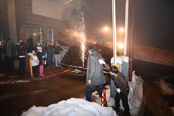 Yoğun kar yağışı nedeniyle evine gidemeyip fazla mesai yapan operatörün doğum günü olması sebebiyle, ailesiyle birlikte operatörün görev bölgesine gidilerek kendisine doğum günü sürpriz yapıldı.