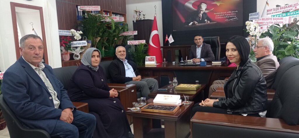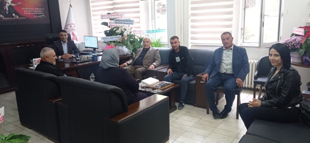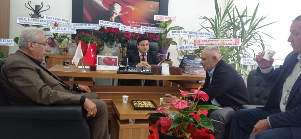 Cumhuriyet Halk Partisi (CHP) Afşin İlçe Başkanı İsmail Kalender ve Yönetim Kurulu üyeleri Afşin Devlet Hastanesi Başhekimliği görevine atanan Dr.Fikri Şirin’i makamında ziyaret ederek hayırlı olsun dileklerinde bulundular.