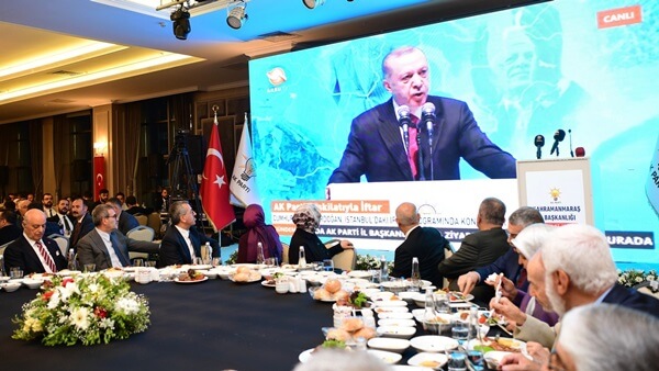 Kahramanmaraş AK Parti Teşkilat iftarı gerçekleştirildi. Canlı yayınla tüm teşkilatlara seslenen Cumhurbaşkanı Erdoğan, “Dayanışmanın, yardımlaşmanın, kardeşliğin bereketi içerisinde geçen bu yıl ki Ramazan ayını teşkilatlarımızın da çok iyi değerlendirdiğini görmekten memnuniyet duyuyorum. Ülkemizin tüm illerinde, ilçelerinde, mahallelere, sokaklara, hanelere dağılan teşkilat mensuplarımıza iftardan sahura kadar süren gayretli çalışmaları için teşekkür ediyorum” dedi.