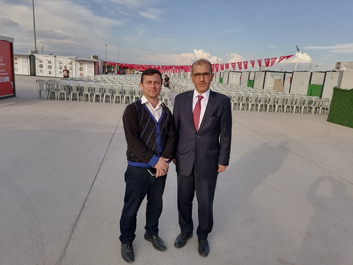 Azerbaycan-Türkiye İş Adamları Birliği ve Azerbaycan MÜSİAD üyelerinden oluşan Azerbaycan heyetinin Kahramanmaraş Türkoğlu’nda bulunan Azerbaycan Geçici Barınma Merkezinde ki İftar programına katılan ve burada Afşin Merkez Yayın Grubu Genel Yayın Yönetmeni Halil Demir ile de görüşen Bakü İletişim Müşaviri Cihangir İşbilir, gayretli çalışmalarından dolayı tebrik etti.