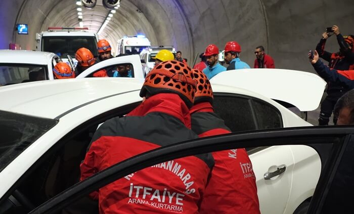 Kahramanmaraş Büyükşehir Belediyesi; afet ve acil durumlarda itfaiye personellerinin becerilerini artırmak, olaylara müdahale süresini azaltmak ve paydaş kurumlarla koordinasyonu sağlamak için eğitim ve tatbikatlarını sürdürüyor. Bu kapsamda, Edebiyat Yolu’nda bulunan Cahit Zarifoğlu Tüneli’nde; Büyükşehir Belediyesi İtfaiyesi, Karayolları Genel Müdürlüğü, Jandarma Arama Kurtarma (JAK), AFAD ve UMKE ekiplerinin katılımıyla gerçeği aratmayan bir tatbikat gerçekleştirildi. Trafik kazası, yangın ve sıkışma gibi acil durum ve kurtarma hazırlıkları kapsamında düzenlenen bu tatbikat, ekiplerin becerilerini ve iş birliği yetkinliklerini test etme fırsatı sundu. Senaryo gereği tünel içerisinde meydana gelen trafik kazasına hızlı bir şekilde müdahale eden ekipler, araç içerisinde sıkışan yaralıları hızlı ve doğru müdahaleyle bulundukları yerden çıkararak sağlık ekiplerine teslim etti.