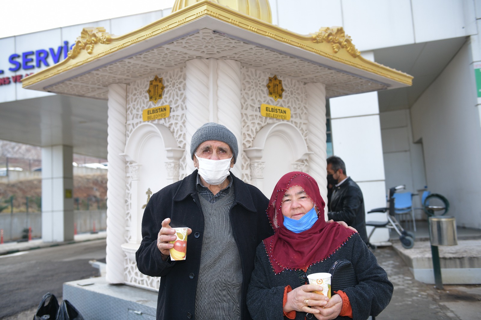 Elbistan Belediyesi, sosyal belediyecilik anlayışla sürdürdüğü çalışmalar kapsamında Devlet Hastanesi ve bazı noktalara kurduğu ‘İkram Çeşmesi’ ile vatandaşlara sıcak çorba ikram ediyor.