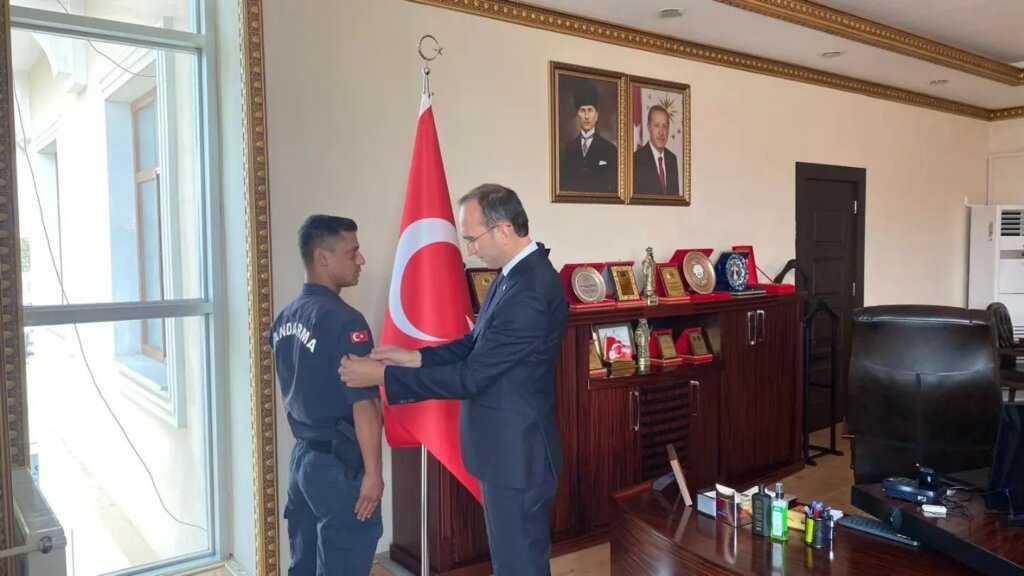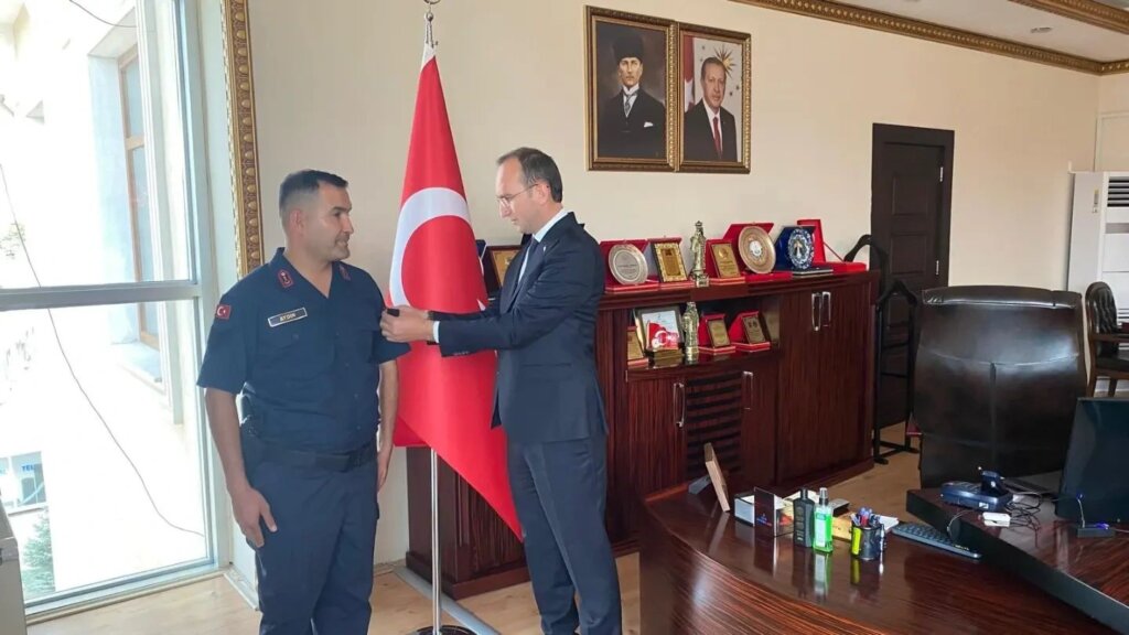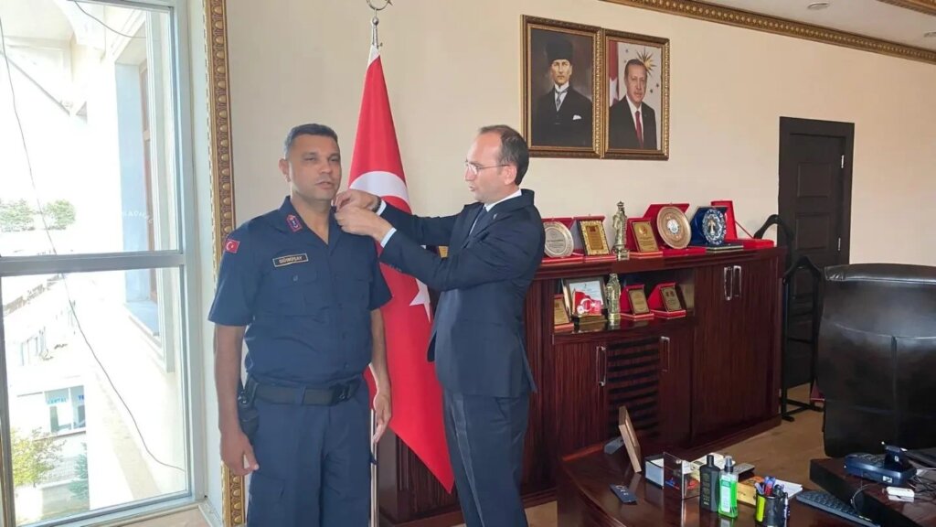 Afşin İlçe Jandarma Komutanı Özgür Gümüşay, Yarbay rütbesine terfi etti. Gümüşay ve terfi alan Jandarma Personellerine İlçe Kaymakamı Muammer Sarıdoğan rütbelerini taktı.