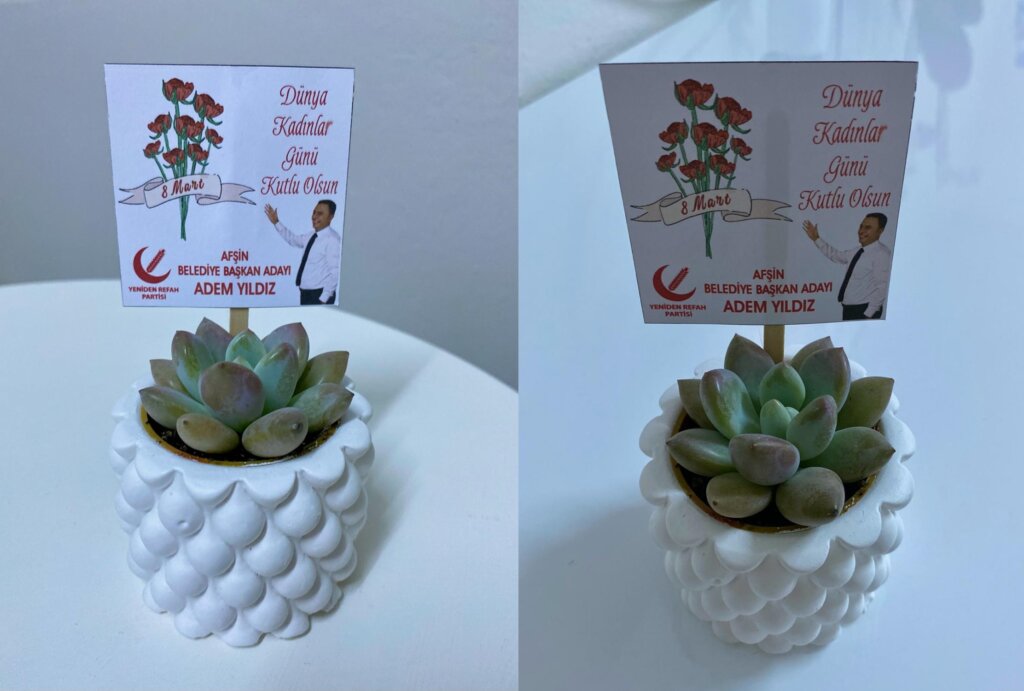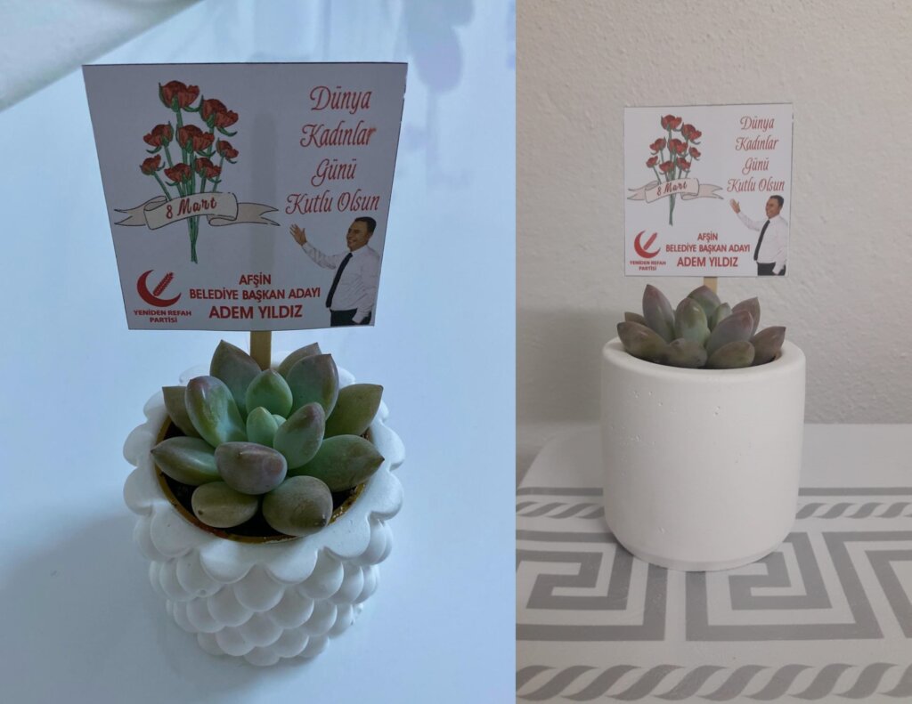 Önce ki gün gerçekleşen 8 Mart ziyaretlerinde Yeniden Refah Partisi Afşin Belediye Başkan Adayı Adem Yıldız’ın ziyaretlerinden memnuniyetlerini ifade eden Kadınlar, Biz Kadınlara bu özel günde bizleri Afşin de bir ilk olan sukulent çiçeği ile kadınlar günümüzü kutlamasından dolayı teşekkür ediyoruz. Diğer kurumlar ve partiler alışı gelen sade bir karanfil ile kutlama yapıyorlar ve iki gün sonra karanfil veya gül çürüyor. Sukulent çiçek kalıcı olması bakımından evimizin ve iş yerimizin bir köşesine bırakacağız. Afşinde ilk defa böyle anlamlı bir hediye aldık.