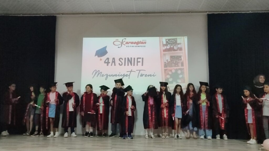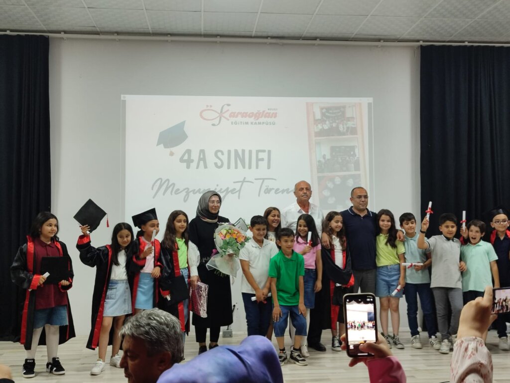 Afşin Özel Karaoğlan Kolejinde İlkokul son sınıf öğrencileri Mezuniyet heyecanı yaşadı. mezuniyet töreni Afşin Belediyesi Kültür Evinde gerçekleştirildi.