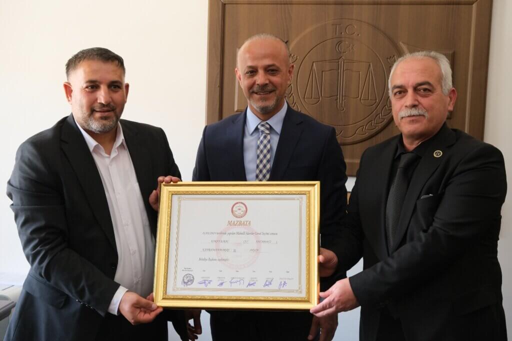 Yerel seçimlerde Afşin Belediye Başkanı seçilen Koray Kıraç, İlçe Seçim Kurulundan mazbatasını aldı. Mazbatayı aldıktan sonra Afşin Belediyesi’nde devir teslim töreni gerçekleştirildi. Yeni başkan Koray Kıraç başkanlık koltuğuna oturdu.