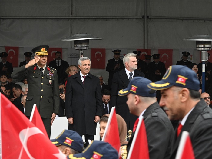Törende, Kahramanmaraş’ın şanlı mücadelesinin simgesi olan kırmızı şeritli İstiklal Madalyası, Büyükşehir Belediye Başkanı Fırat Görgel tarafından Türk Bayrağı’na takılarak göndere çekildi. Bu tarihi ve anlamlı an, alanı dolduran binlerce kişi tarafından uzun süre alkışlandı.