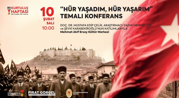 Etkinlik takvimi kapsamında 10 Şubat Salı günü saat 10.00’da Mehmet Akif Ersoy Kültür Merkezi’nde 22 gün 22 gece süren tarihî mirasın gelecek nesillere aktarılması için “Hür Yaşadım, Hür Yaşarım” temalı konferans düzenlenecek. Konferansta, Doç. Dr. Mustafa Edip Çelik, Araştırmacı-Yazar Mehmet Işık ve Şevki Karabekiroğlu, Maraş halkının özgürlük ve bağımsızlık ruhunu anlatacak.
