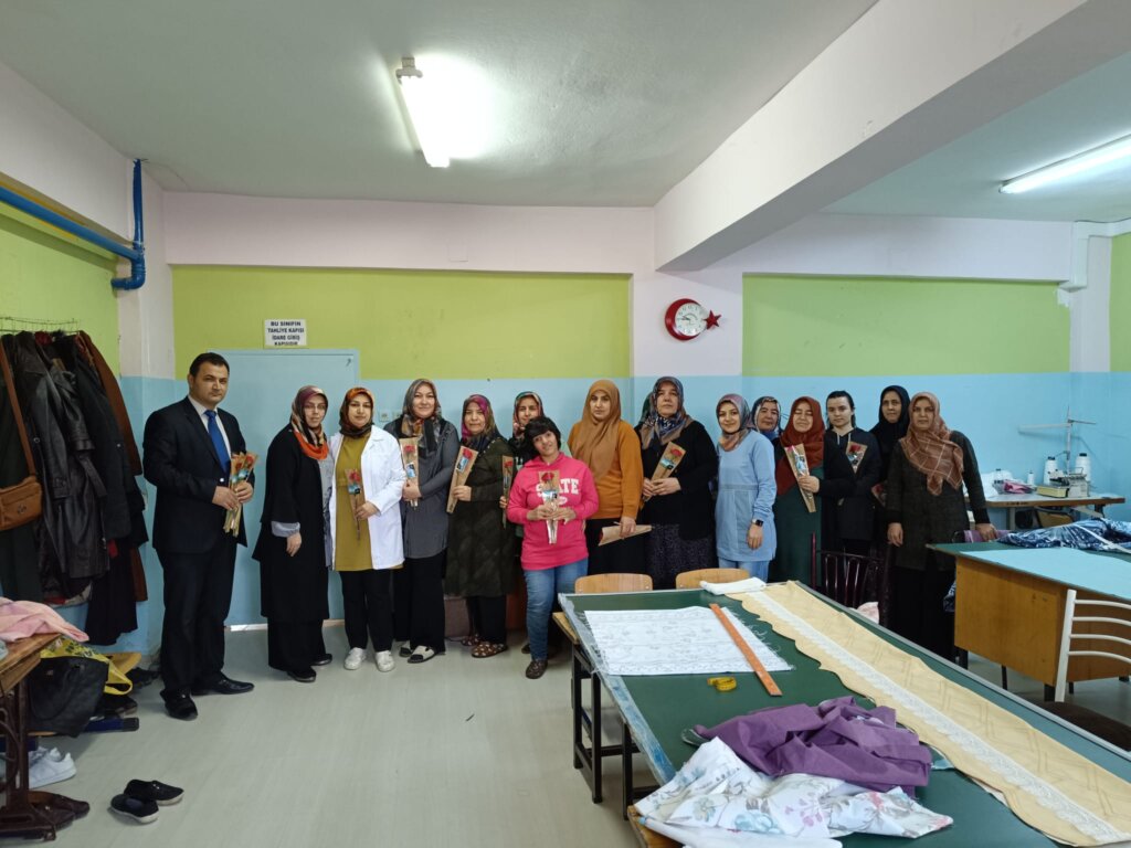 Afşinbey Mahallesinde Dikiş Nakış kursunda çalışan Kadınları ziyaret ile başlayan programda Mahallede Okullar ve Sağlık Ocağı ziyaret edilerek Kadınların 8 Mart Dünya Kadınlar günü kutlandı.