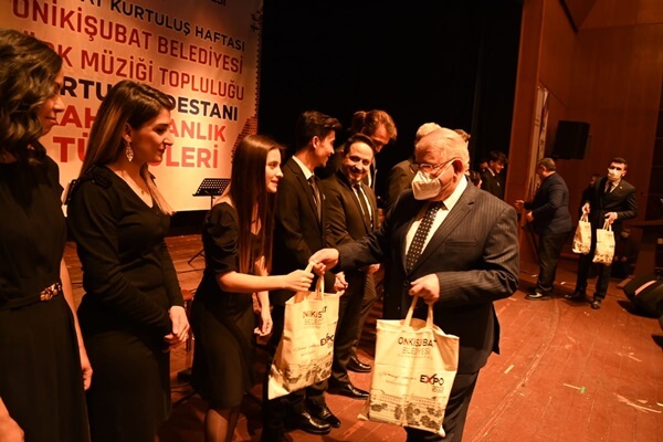 Onikişubat Belediyesi 4-12 Şubat Kurtuluş Etkinlikleri kapsamında Belediye bünyesinde kurulan Türk Müziği Topluluğu tarafından seslendirilen ‘Kahramanlık Türküleri’ konserini Necip Fazıl Kültür Merkezinde verdi. Konsere AK Parti Onikişubat Başkanı Mücahit Kara, İl Kültür ve Turizm Müdürü Seydihan Küçükdağlı katıldı. Halkın yoğun ilgi gösterdiği konserde coşkulu kalabalık hep bir ağızdan türkülere eşlik etti. Program öncesi konuşma yapan Başkan Mahçiçek şunları dile getirdi.