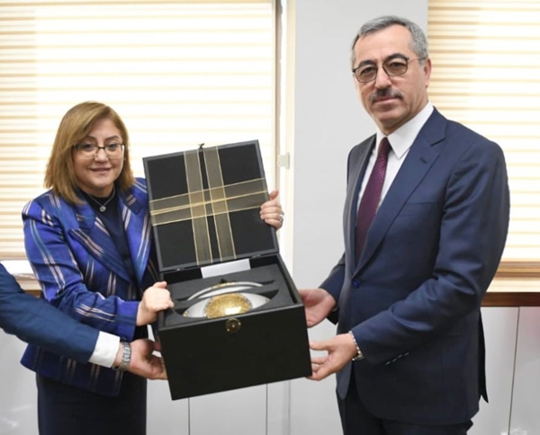 Kahramanmaraş Büyükşehir Belediye Başkanı Hayrettin Güngör, Türkiye Belediyeler Birliği Mayıs ayı Olağan Meclis Toplantısı’na katılmak için bulunduğu Ankara’da Türkiye Belediyeler Birliği ve Gaziantep Büyükşehir Belediye Başkanı Fatma Şahin ile bir araya geldi. Ziyarette TBB Başkanı Fatma Şahin, 2008 – 2018 yılları arasında Genel Sekreterlik görevinde bulunan Başkan Güngör’e hizmetlerinden dolayı teşekkür ederek plaket takdim etti. Plaket takdimi için Fatma Şahin’e teşekkür eden Başkan Güngör, “Türkiye Belediyeler Birliği Meclis Toplantısı öncesi 2008 – 2018 döneminde Genel Sekreter olarak TBB’de yapmış olduğum hizmetlerden dolayı Sayın Başkanımız Fatma Şahin’in plaket takdimi oldu. Vefa ve kadirşinaslıkları için teşekkür ederim” ifadelerini kullandı.